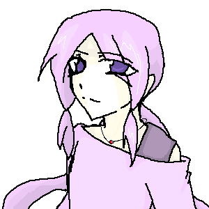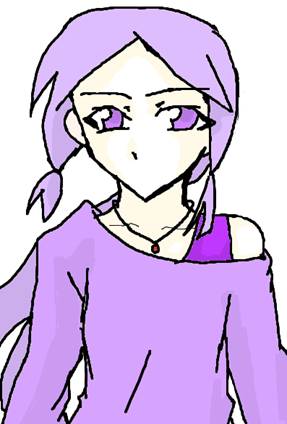 薄紫の髪は長く、太腿辺りまである。一つに結わえているが何故か二つに分かれる。