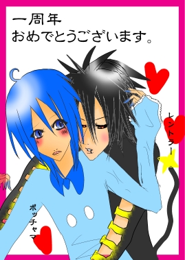 オフ中心での友達から本館の一周年に頂きました、擬人化ポッチャマくん&レントラーくん。